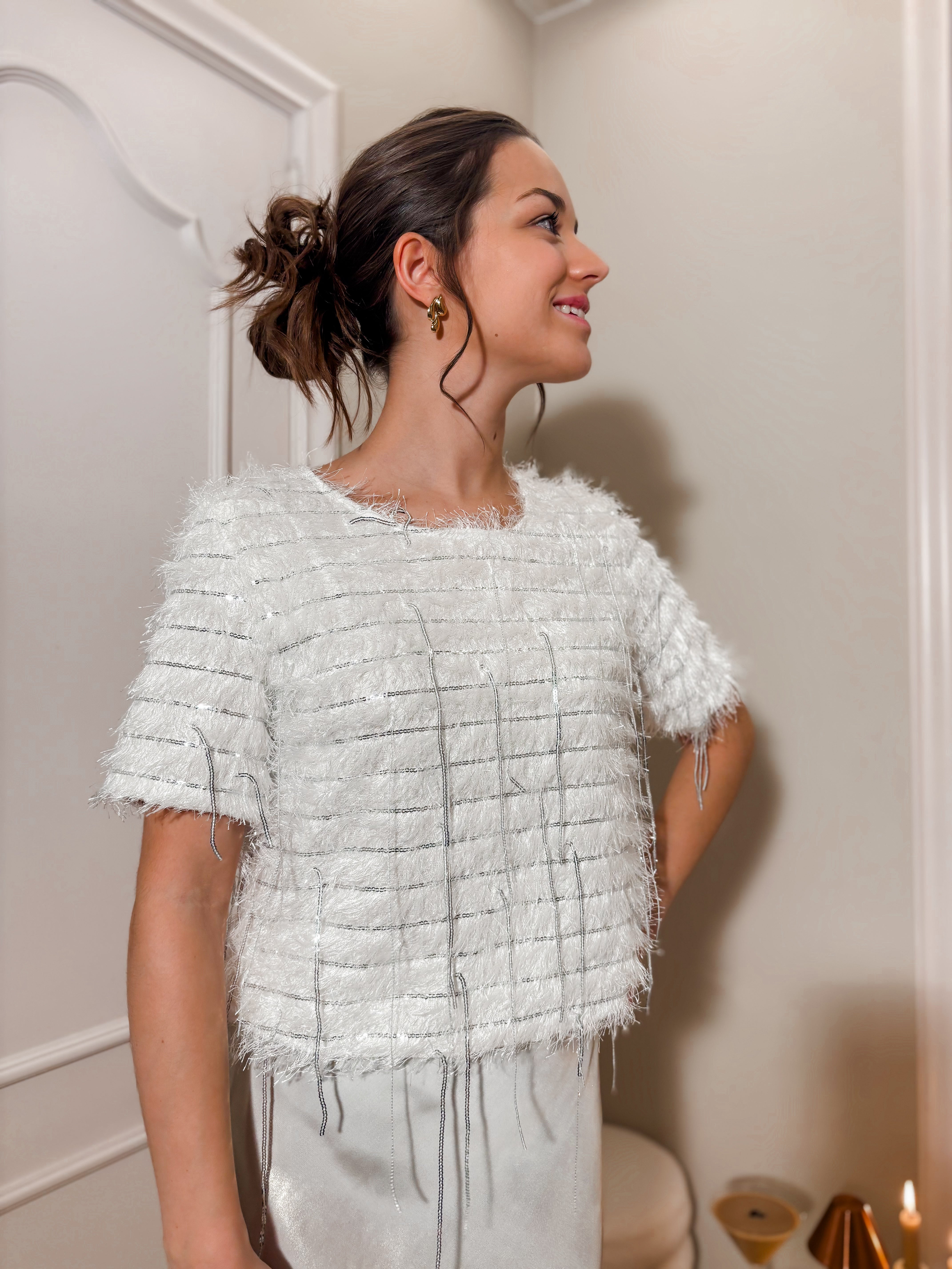 Ferlina SEQUIN FUR TOP WHITE