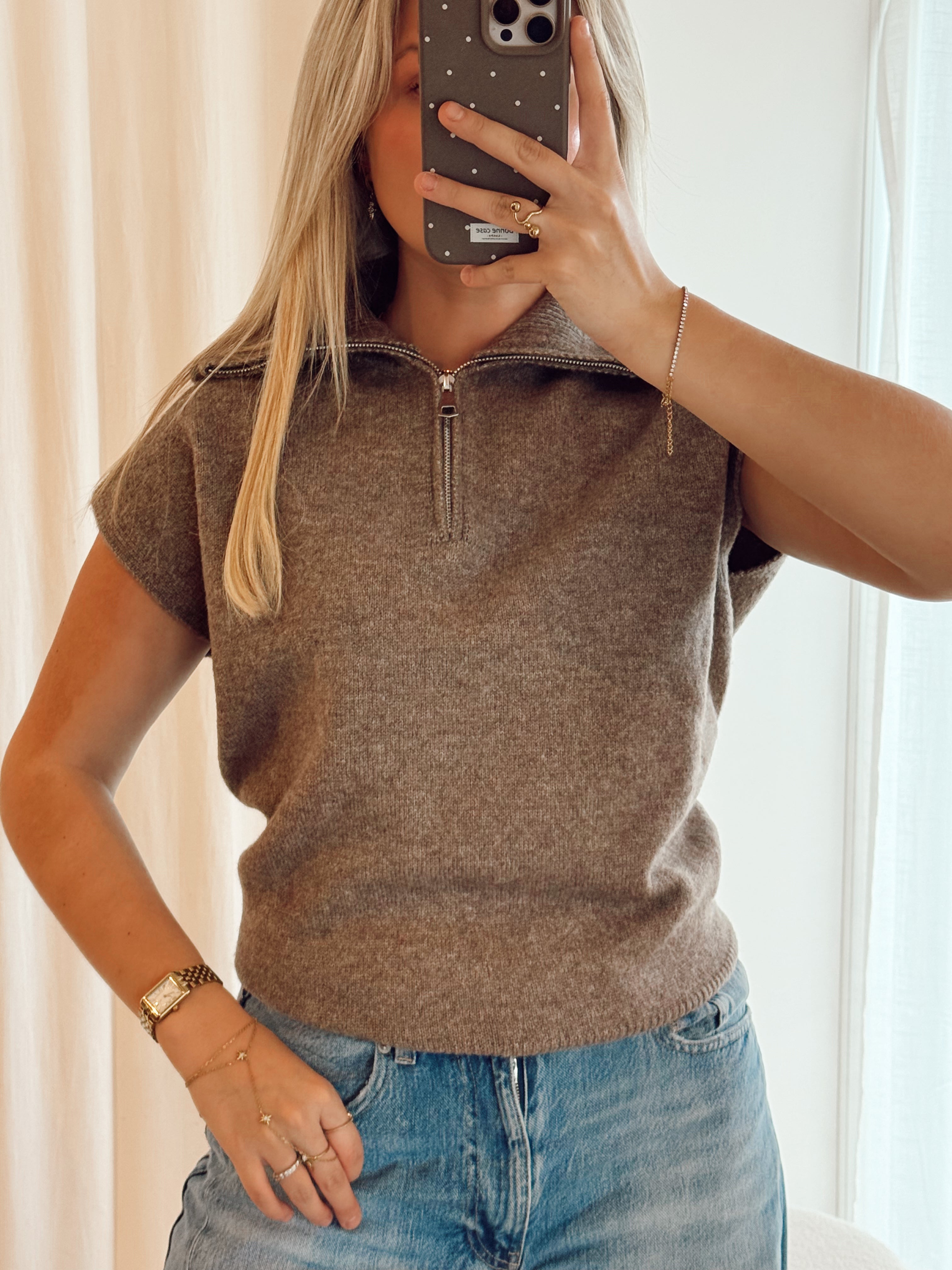 Taupe debardeur with zipper